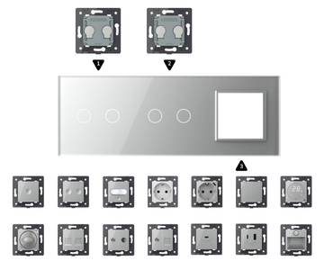 • Livolo | Grijs | 2+2+SR | Glasplaat | Combinatie
