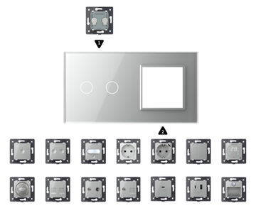 - Livolo | Grijs | 2+SR | Glasplaat | Combinatie