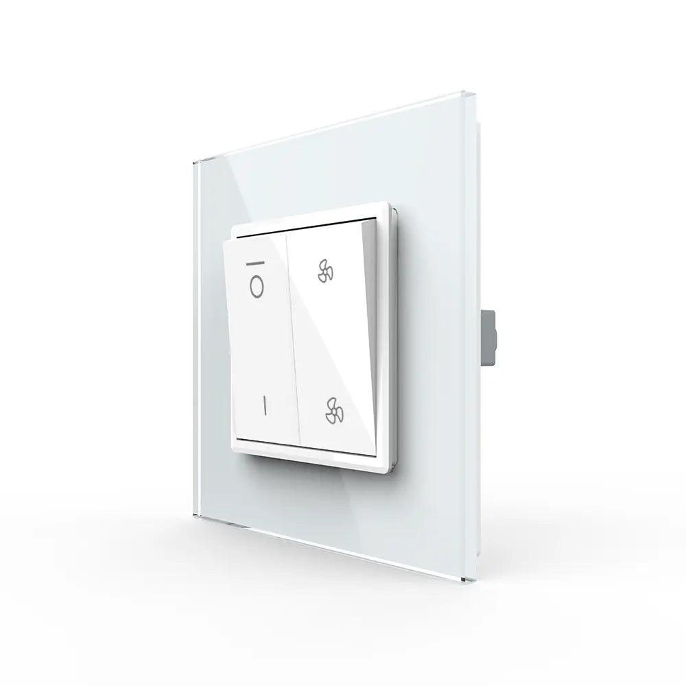 Ervaar het gemak en de verfijnde uitstraling van de complete Livolo 3-standenschakelaar voor ventilatie. Deze uitvoering wordt volledig geleverd inclusief wit glazen afdekraam en vormt een stijlvolle en gebruiksklare oplossing voor het bedienen van mechanische ventilatiesystemen, veelal toegepast bij buisventilatoren. Het strakke glazen design zorgt voor een luxe en uniforme afwerking op de wand en past perfect binnen moderne interieurs.