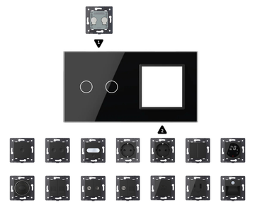 Zwart glazen afdekraam compatibel met alle Livolo 2- Touchschakelaars en de SR-modules