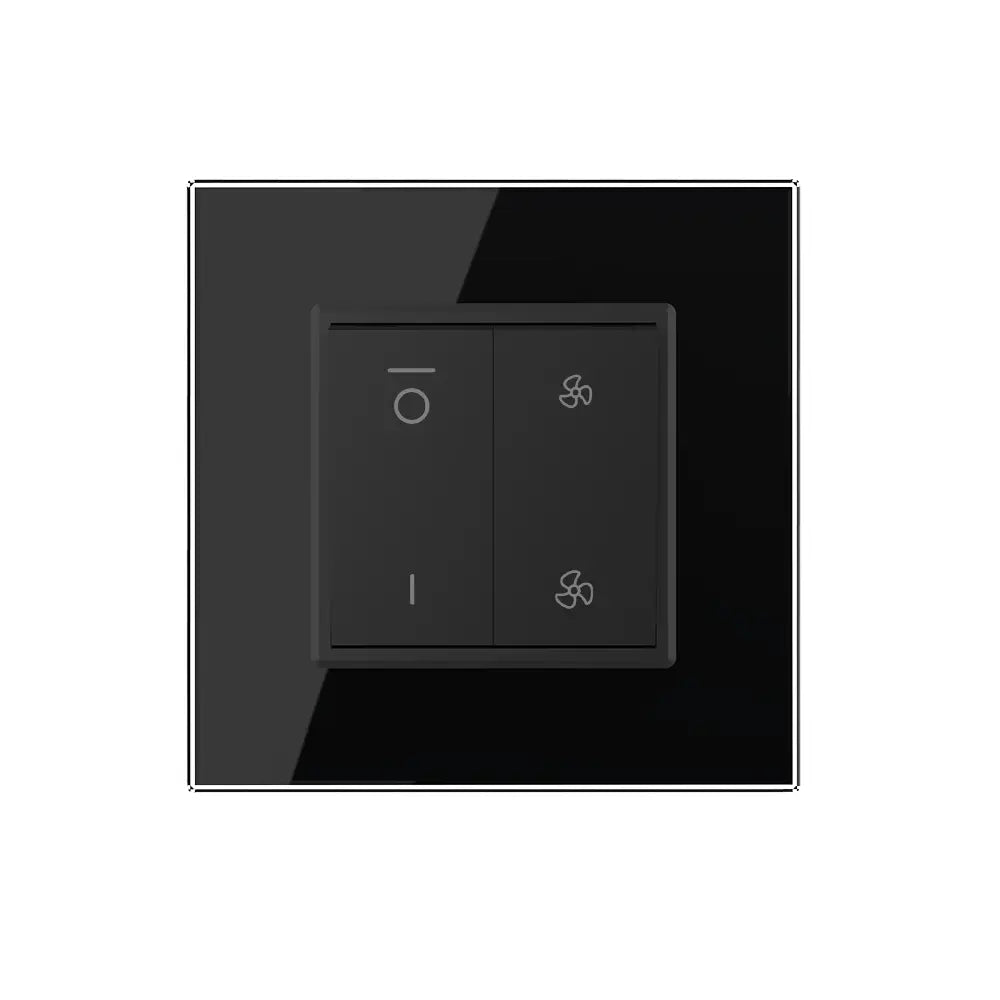 Deze complete 3-standenschakelaar wordt geleverd inclusief zwart glazen afdekraam en is speciaal ontwikkeld voor het aansturen van mechanische ventilatie en buisventilatoren. Dankzij de overzichtelijke bediening met twee knoppen schakelt u moeiteloos tussen de drie ventilatiestanden, terwijl de hoogwaardige materialen en luxe glazen afwerking zorgen voor een duurzame en onderhoudsvriendelijke oplossing. Het resultaat is een strakke, uniforme uitstraling die perfect opgaat in de wand en naadloos aansluit bij een modern interieur.