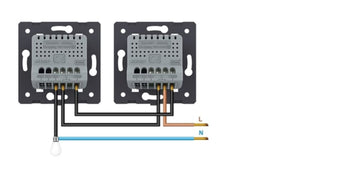 De Livolo SR touch wisselschakelaar kan eenvoudig op uw standaard bedrading worden aangesloten. Een belangrijke eigenschap van deze wisselschakelaar is dat hij alleen werkt in combinatie met een andere touch wisselschakelaar. Dit maakt het mogelijk om één of meerdere lichtpunten vanaf meerdere schakelaars te bedienen, wat vooral handig is in grotere ruimtes of gangen.