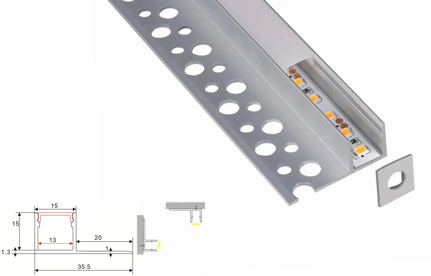 Het aluminium profiel is speciaal ontworpen voor inbouw in pleisterwerk (stuc) of achter wand- of vloertegels. Hierdoor wordt de verlichting naadloos weggewerkt en blijft enkel het zachte licht zichtbaar. Een ideale keuze voor wie een stijlvol en hoogwaardige lichtoplossing zoekt zonder zichtbare armaturen. Perfect voor indirecte verlichting, accentverlichting of het creëren van een architectonisch lichteffect.